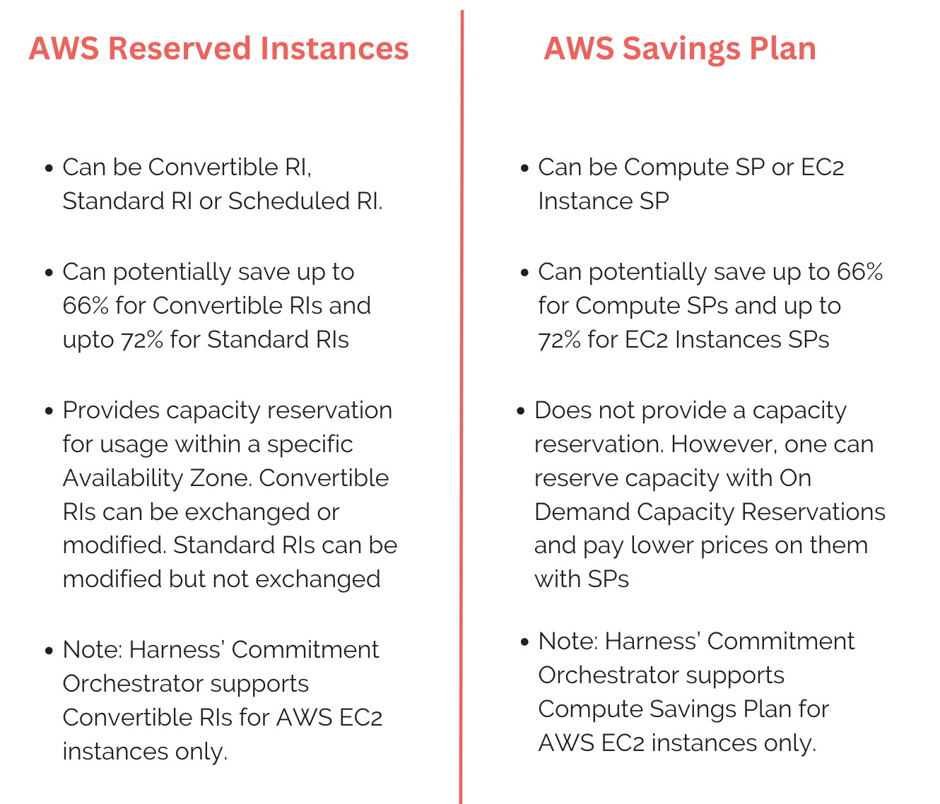 To help bring down the cloud costs, providers often offer special discounted rates against on-demand costs to the customers. These commitments are mostly in form of RI (Reserved Instances)Reserved Instances are a pricing model offered by cloud service providers that allows customers to reserve and commit to a specific amount of computing capacity in advance for a term of one or three years or SPs(Savings Plan)Savings Plans are a flexible pricing model introduced by cloud service providers that offer customers significant discounts on their usage in exchange for committing to a consistent amount of usage, measured in dollars per hour, for a one- or three-year term..