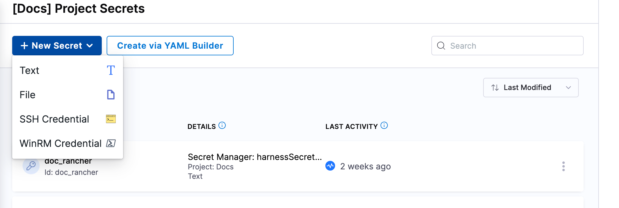 When populating a UI field, you can search and select secrets by the Secret Name.