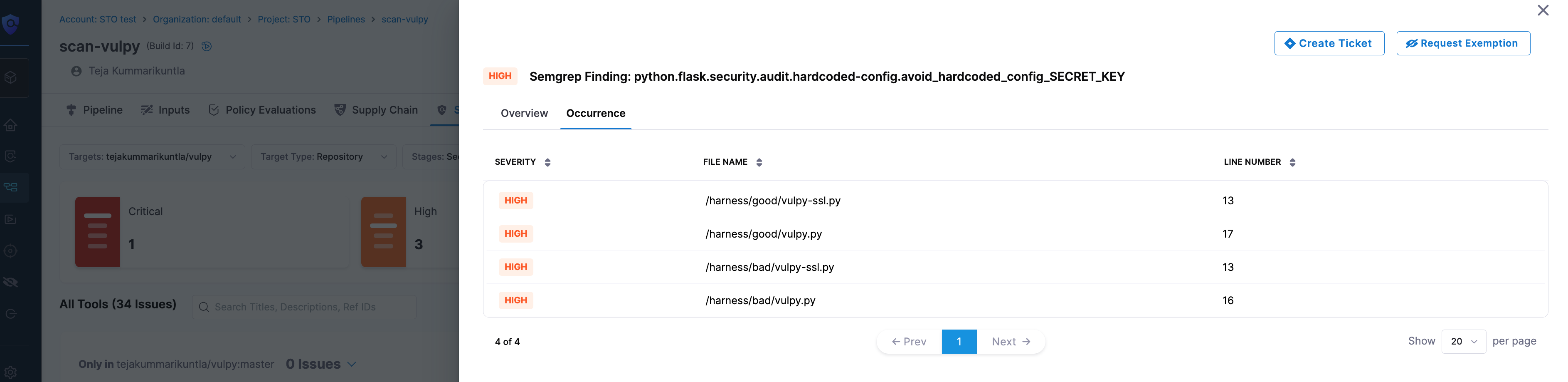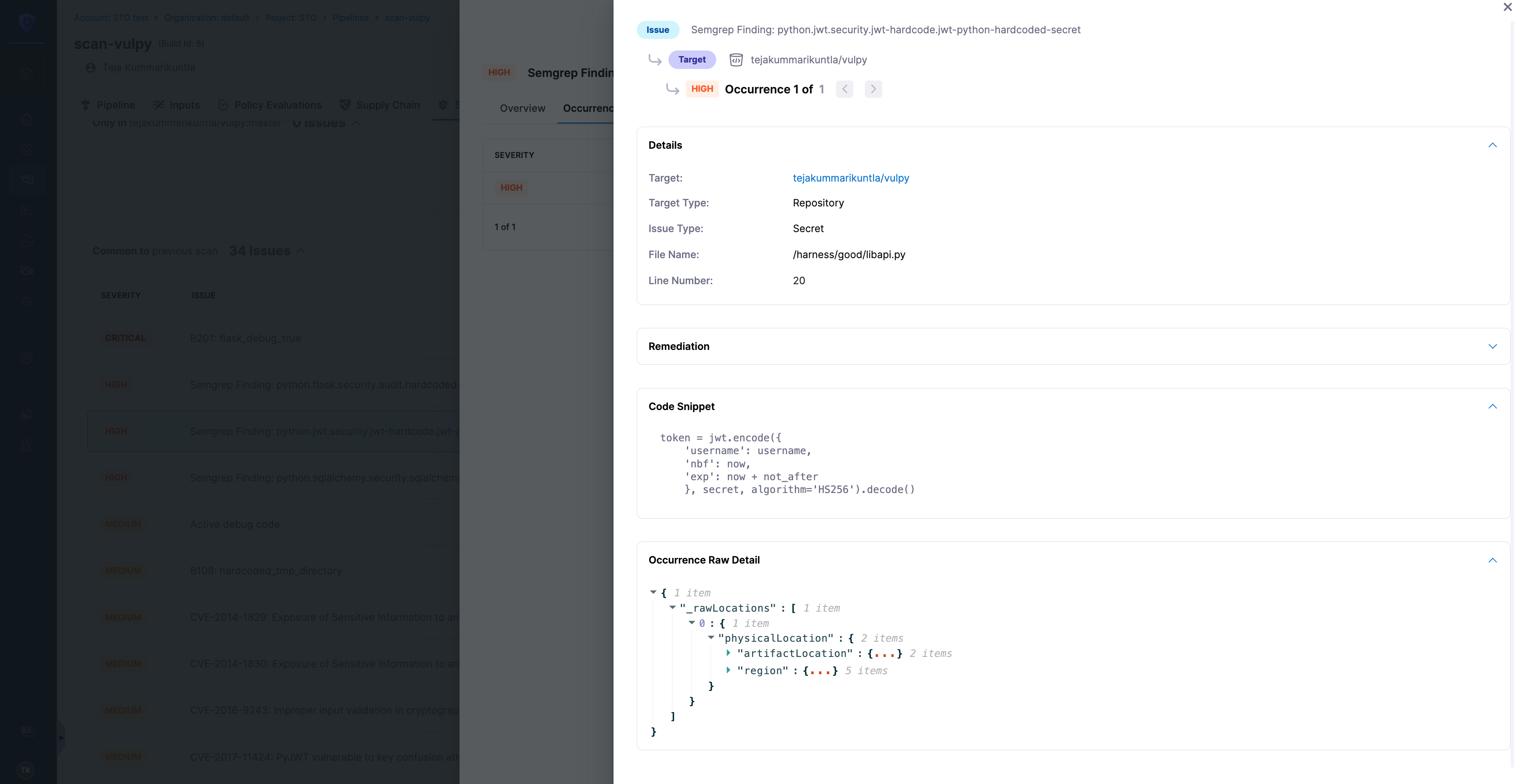• Remediation: Steps from Harness AI and Scanner (see Fix security issues using Harness AI).